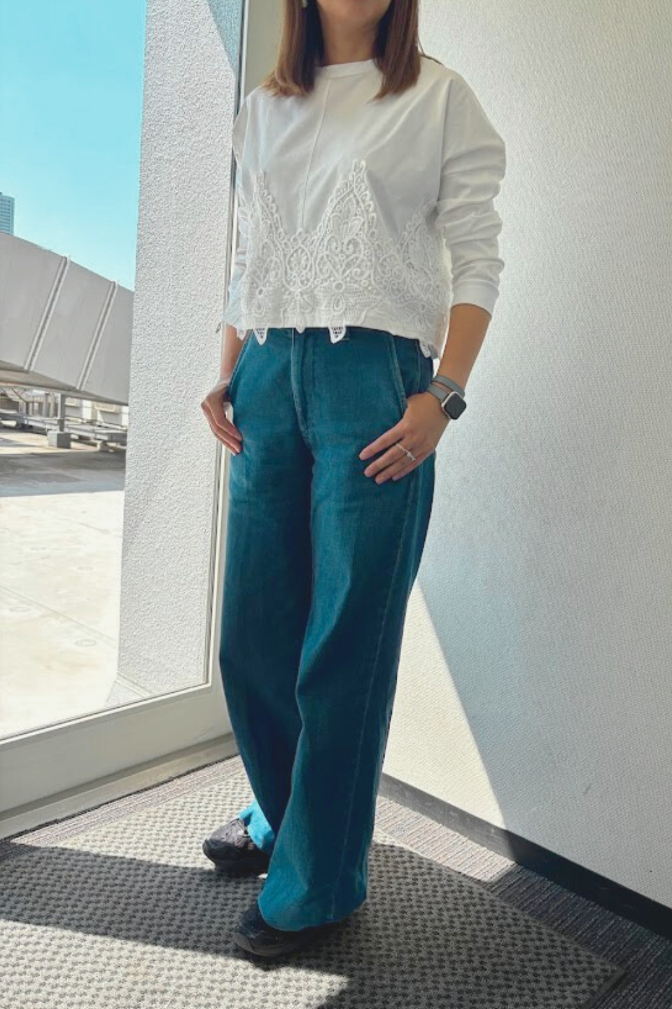 カジュアルなデニムスタイルをクラスアップしてくれるコットントップス、